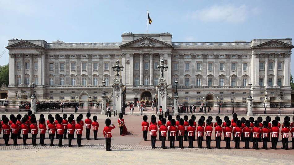 Palatul Buckingham – ReEi??edinEi??a familiei Regale Ai??n Londra. Acest obiectiv turistic nu cred cA? mai are nevoie de nicio introducere. Aici se organizeazA? diferite evenimente, iar turiEi??tii pur Ei??i simplu forfoteazA? Ai??n jurul sA?u. Accesul este permis doar Ai??n lunile cA?nd Regina este plecatA?. De asemenea nu se viziteazA? tot palatul, doar camera tronului, apartamentul statal Ei??i o mic parte din cele 775 de camere. ExistA? tradiEi??ia conform cA?reia atunci cA?nd se schimbA? garda, Ai??n curtea din faEi??A? a palatului, infanteriEi??tii cu tunici roEi??ii Ei??i cA?ciuli din blanA? de urs din garda veche mA?rEi??A?luiesc Ai??ntA?lnindu-se cu cei din garda nouA? Ai??n acompaniament muzical Ei??i le predau niEi??te chei simbolice. Un adevA?rat spectacol ce meritA? vizionat cel puEi??in o datA?. MenEi??ionA?m faptul cA? atunci cA?nd Membrii Familiei Regale sunt prezenEi??i Ai??n palat este arborat steagul regal.