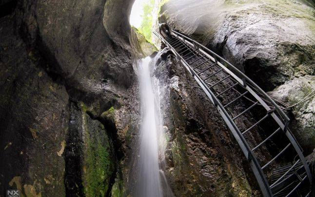 Canionul 7 scA?ri are o lungime totalA? de 160 m Ei??i o diferentA? de nivel de 58 m. Pentru a urca cele 7 scA?ri metalice legate prin numeroase pasarele ai nevoie de un timp preEi??ios, deoarece oferA? niEi??te priveliEi??ti de neuitat, fiindcA? aici natura Ai??Ei??i picteazA? tabloul viu pentru ochii turiEi??tilor ce iubescAi?? unicitatea locului. Printre stA?ncile foarte Ai??nalte, cerul se face abia vA?zut, iar cascadele sunt o lucrare desA?vA?rAYitA? a naturii.