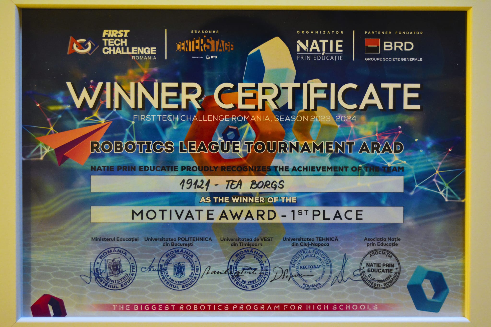 Echipa TEA-BORGS condusă de singura fata lider de echipa, Andra-Gabriela Cirstoiu, a obținut o binemeritată calificare la etapa națională, aducând la Târgu Jiu premiul 1st Place & Semifinalist Alliance Captain.