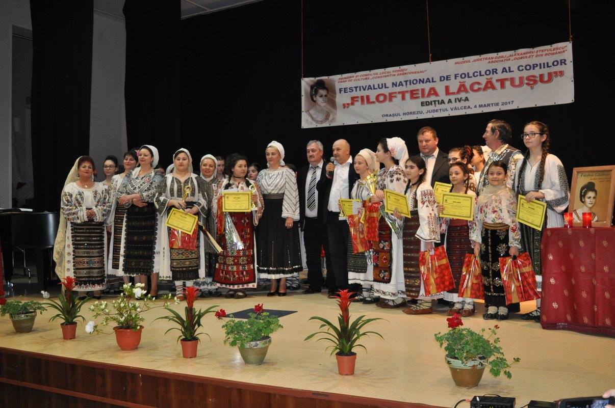 Festivalului Național de Folclor al Copiilor „Filofteia Lăcătușu” și-a desemnat câștigătorii. Concursul s-a desfășurat sâmbătă, 4 martie 2017, la Casa de Cultură „Constantin Brâncoveanu” din Horezu. Un număr de 30 de copii și-au dovedit talentul muzical.