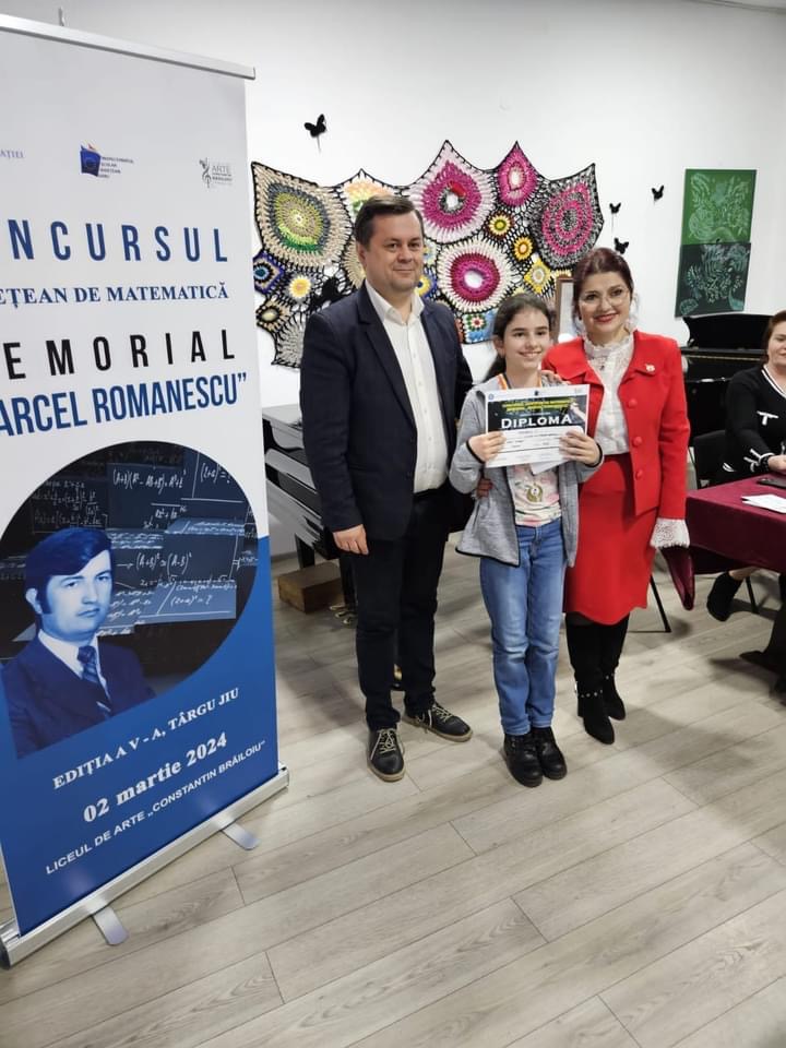 “Astăzi, la Liceul de Arte “Constantin Brăiloiu”, au fost premiați câștigătorii Concursului Interjudețean de Matematică <Memorial Marcel Romanescu>, ajuns la a cincea ediție. Acest concurs poartă numele tatălui meu, care a fost cadru didactic la această școală și care mi-a fost o sursă de inspirație și ghid în alegerea carierei mele în învățământ.