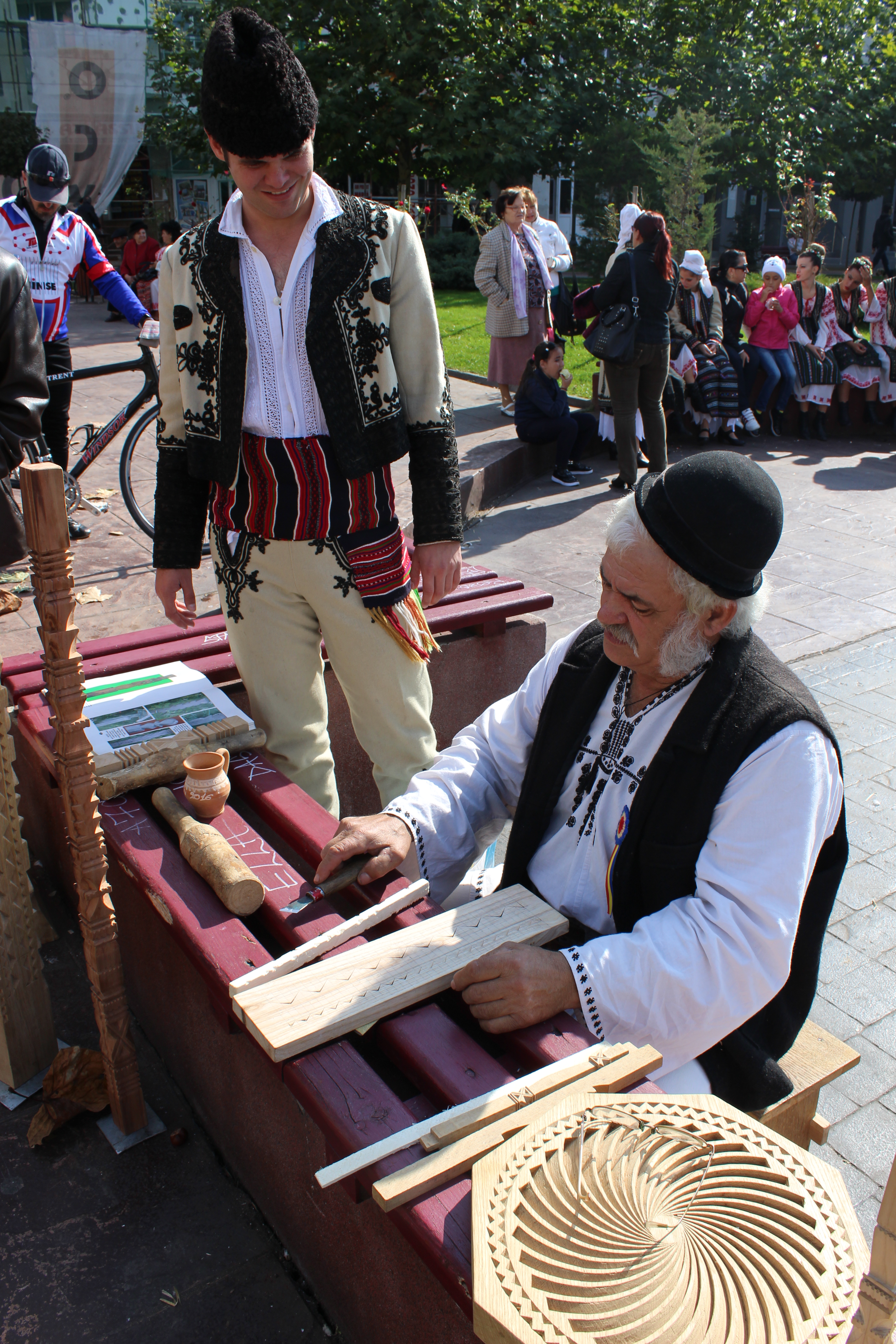 Pe centrul municipiului Târgu-Jiu, organizatorii Festivalului Toamnei au invitat câțiva meșteri populari, care au lucrat în văzul tuturor. La scurt timp după ce olarul Dumitru Coneru a pornit roata și a început să freamăte lutul, zeci de copii, dar și adulți curioși s-au adunat în jurul său, urmărindu-l atent.
