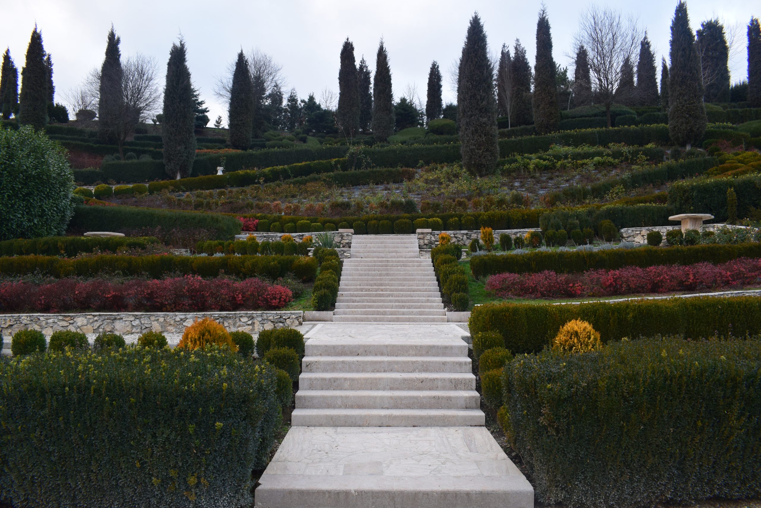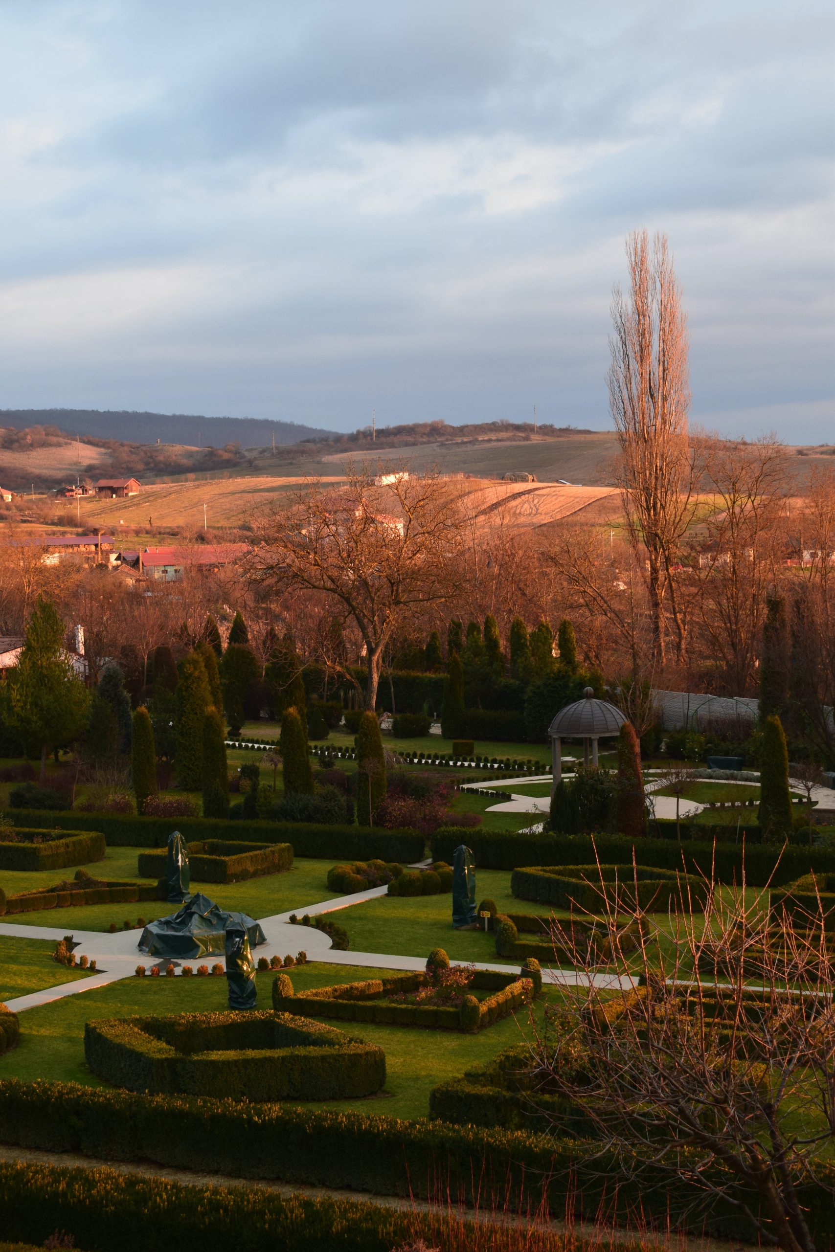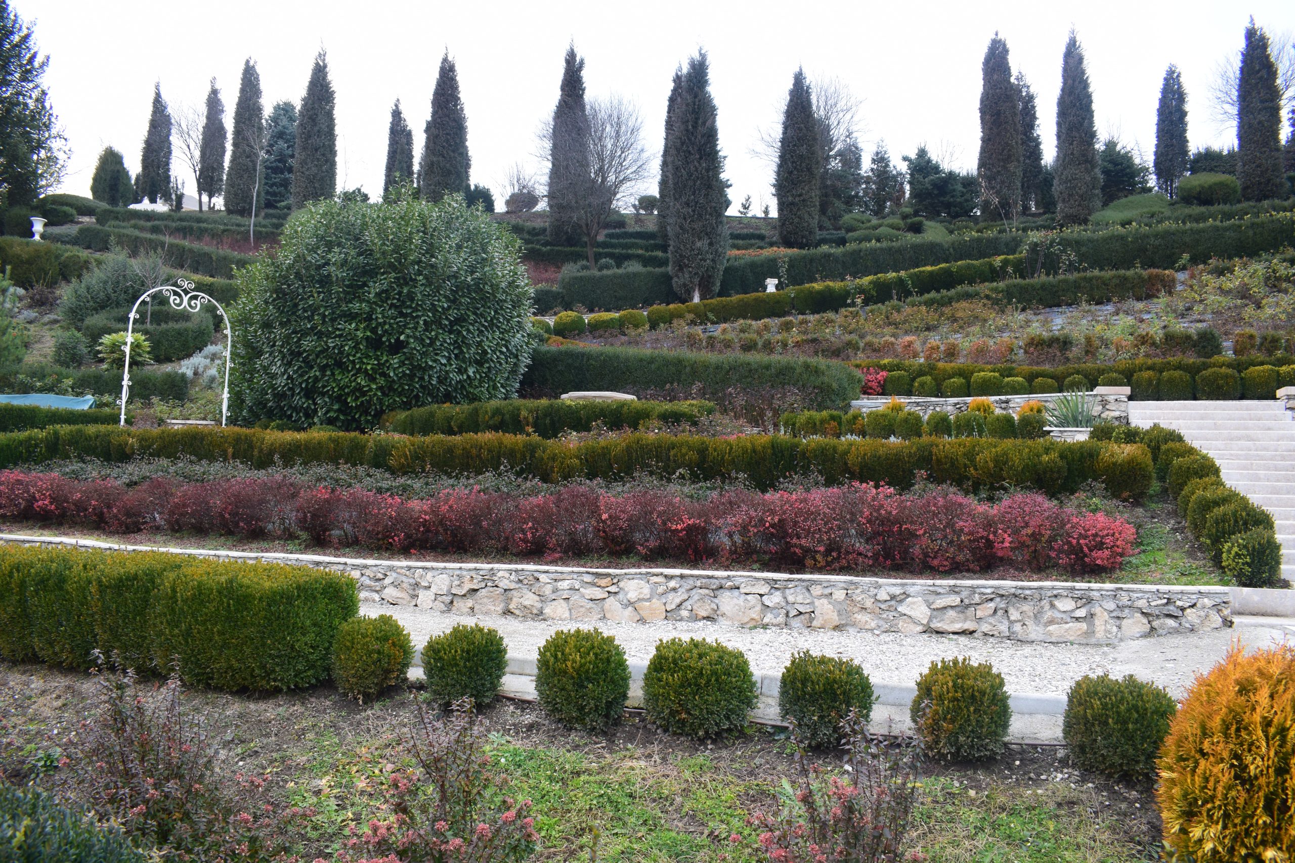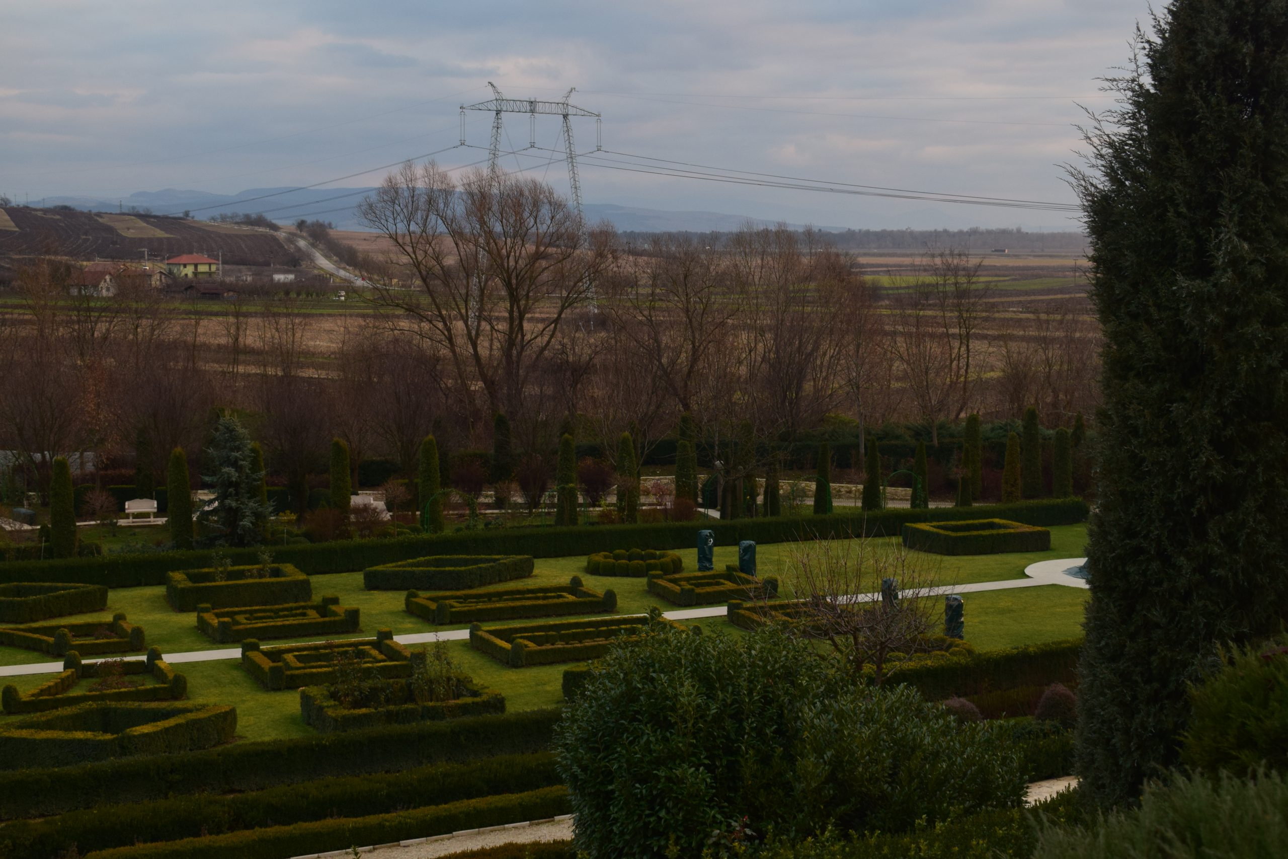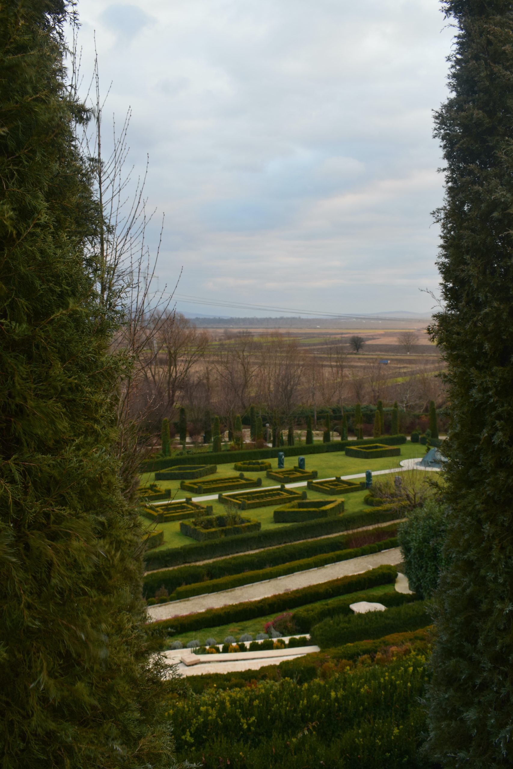După ce ai trecut de acești „străjeri”, în partea dreaptă descoperi „jocurile buxus”, de inspirație renascentistă.